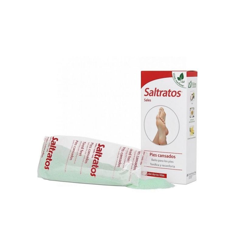 Sales relajantes para baño de pies. Reducen la sensación de fatiga causada por el esfuerzo diario u ocasional y facilitan la eliminación de las durezas. Contiene extracto de manzanilla, de efectos suavizantes y relajantes. Modo de empleo: En un recipiente con cuatro o cinco litros de agua caliente, disolver tres cucharadas soperas (de 15 a 20 gramos) de sales. Sumergir los pies durante unos 15 minutos y después secarlos sin enjuagar. Se recomienda hacer el tratamiento antes de acostarse y, si se desea aún mayor eficacia, utilizar la Crema Balsámica Saltratos después del baño de pies.