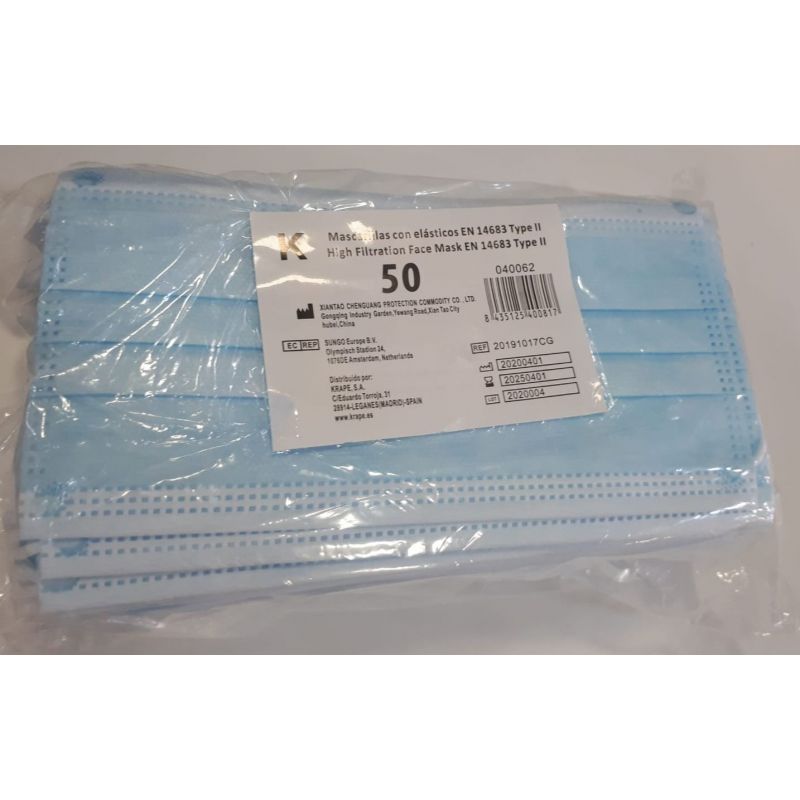 Mascarillas Con Elásticos Tipo 2 50uds