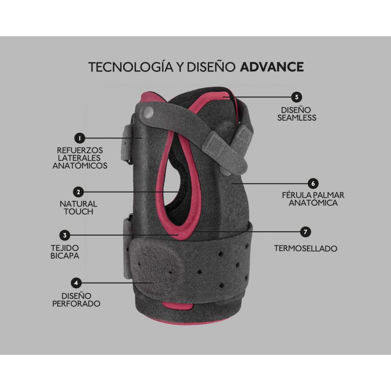 La muñequera Farmalastic Advance ha sido diseñada para ofrecer un elevado nivel de inmovilización, protección y descanso de la muñeca. Limita la flexión dorso-palmar y los movimientos laterales sin reducir la funcionalidad de la mano.