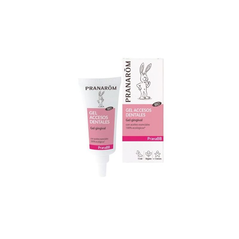 El gel gingival “Accesos dentales“ es un gel de sabor agradable, sin azúcares y sin alcohol, con aceites esenciales ecológicos* de katrafay, manzanilla romana y clavo de especias, combinados con un macerado oleoso de caléndula. Una fórmula aromática específica que calma y alivia el malestar del bebé. El producto mitiga rápidamente las encías sensibles del bebé de forma segura y muy eficaz, incluso si ingiere una pequeña cantidad. Tomar una pequeña dosis de gel con el dedo limpio y aplicar en las encías cada vez que el bebé se queje. Hasta 4 veces al día si es necesario.