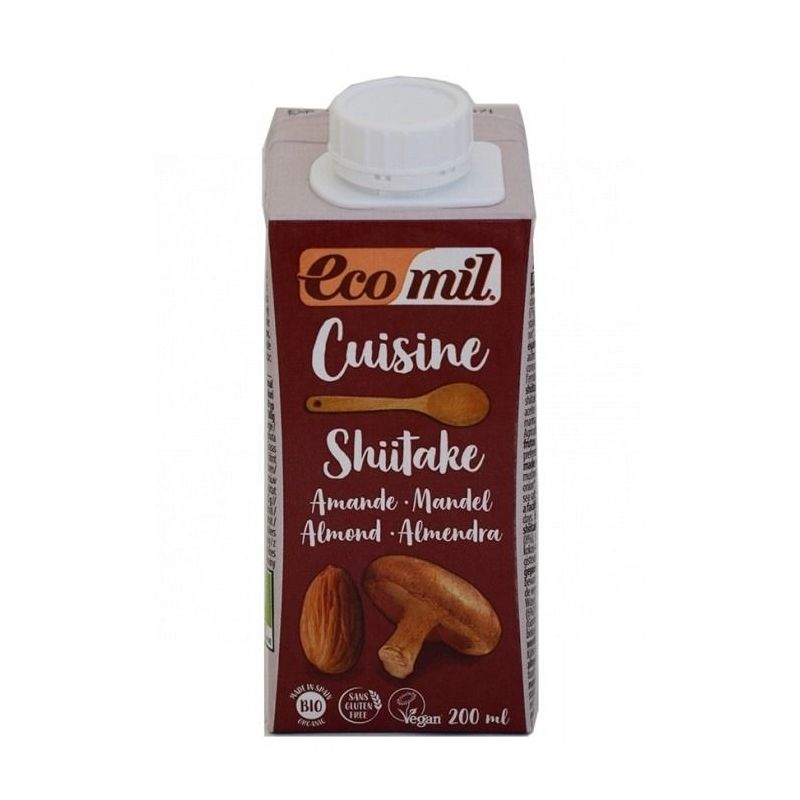 Crema de almendra bio con setas (shiitake y champiñón) para cocinar, alternativa a las natas o cremas de soja, Tetra Brik 200 ml.