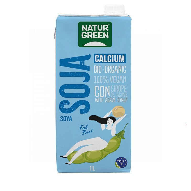 Bebida de soja ecológica enriquecida en calcio. 100% vegetal con calcio de algas marinas. Desde Green Planet Shop te recomendamos las bebidas vegetales de NaturGreen tanto si sigues una dieta vegetariana o vegana, o simplemente eres intolerante a la lactosa. Esta bebida ecológica de soja está endulzada con sirope de agave evitando el uso de azúcares industriales. Es ideal para desayunos, acompañamiento de cereales o para la preparación de yogures caseros y es una leche vegetal perfecta para sustituir a la leche de vaca por su contenido en calcio.