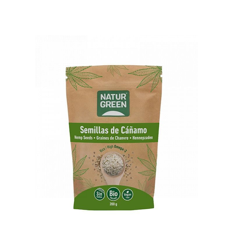 Semillas Ecológicas de Cañamo 200 g de NaturGreen. El cáñamo es una de las plantas más beneficiosas para el ser humano y el aprovechamiento de sus innumerables propiedades se remonta a miles de años. Proviene de la misma planta que la Marihuana (Cannabis Sativa) pero la semilla de Cáñamo no contiene THC (tetrahydrocannabinol) y por lo tanto su consumo no implica psicoactividad alguna. Clasificada como fruto seco, de color marrón a gris oscuro con un diámetro de 3-4 mm y un delicioso sabor entre piñón y nuez. Proteína de la mejor calidad y de fácil digestión, para poder satisfacer las funciones vitales del organismo. La proteína de cáñamo se extrae en frío, lo cual mantiene la semilla viva sin alterar ninguno de sus nutrientes. Al tratarse de semillas ecológicas, su cultivo es respetuoso con el medio ambiente.