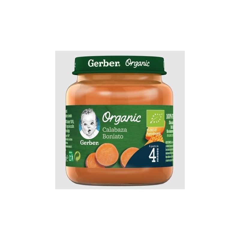 El tarrito para bebé GERBER Calabaza y Boniato está elaborado con nuestras mejores hortalizas 100% ecológicas. Aporta a la dieta de tu bebé los nutrientes de las hortalizas en un formato sostenible para llevar a cualquier parte. Una receta deliciosa y versátil para una cena ligera evitando un exceso de proteínas. O bien, para combinar con cualquier tipo de proteína ya sea carne, pescado o legumbres (en función de la edad del bebé).