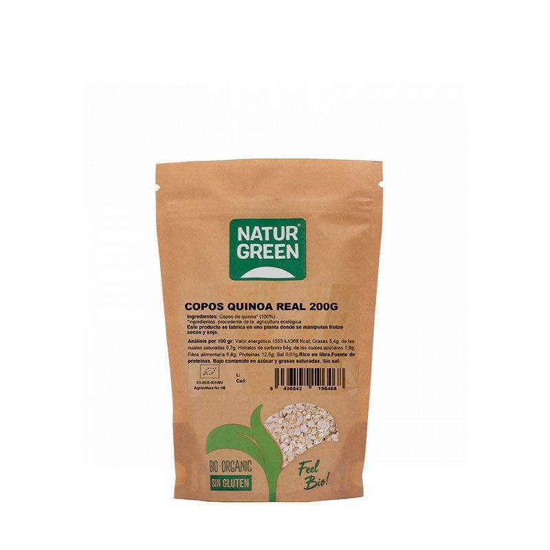 Los copos de quinoa ecológica de NaturGreen son uno de los alimentos más completos que se conocen, ya que la quinoa es rica en proteínas de alto valor biológico, hierro, magnesio, fósforo, potasio, calcio, oligoelementos y vitaminas como la B, C Y E. No contienen gluten y son perfectos para elaborar numerosas recetas, o simplemente para comer acompañados de bebidas vegetales o yogures.