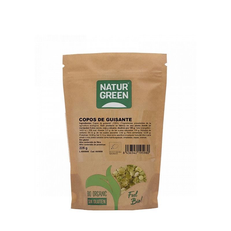 Los guisantes son una importante fuente de fibra. Ayudan a reducir el colesterol y azúcar en sangre y contribuyen a regular el tránsito intestinal. Beneficios que ahora podemos incorporar a nuestros desayunos y meriendas gracias a los copos de guisante bio de NaturGreen. Se pueden tomar solos, acompañados de alguna bebida o también pueden utilizare para elaborar diferentes platos y recetas.