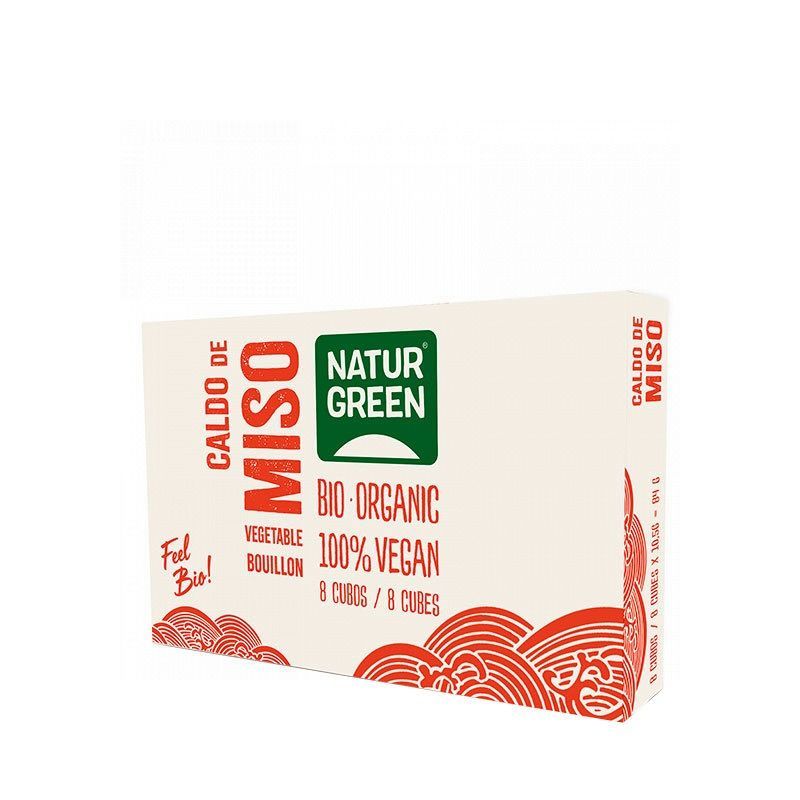El caldo vegetal de miso ecológico de NaturGreen viene en cubitos con los que preparar tu sopa de miso de la forma más rápida y saludable. El miso es tradicional en la cocina japonesa, está elaborado con soja, cebada y sal marina formando una pasta con aroma y fermentada, por lo que te aportará gran cantidad de energía y fibra, siendo idóneo para ayudar a equilibrar la fibra intestinal y la digestion. Además este caldo vegetal es ecológico, por lo que su elaboración no es dañina con el medio ambiente.