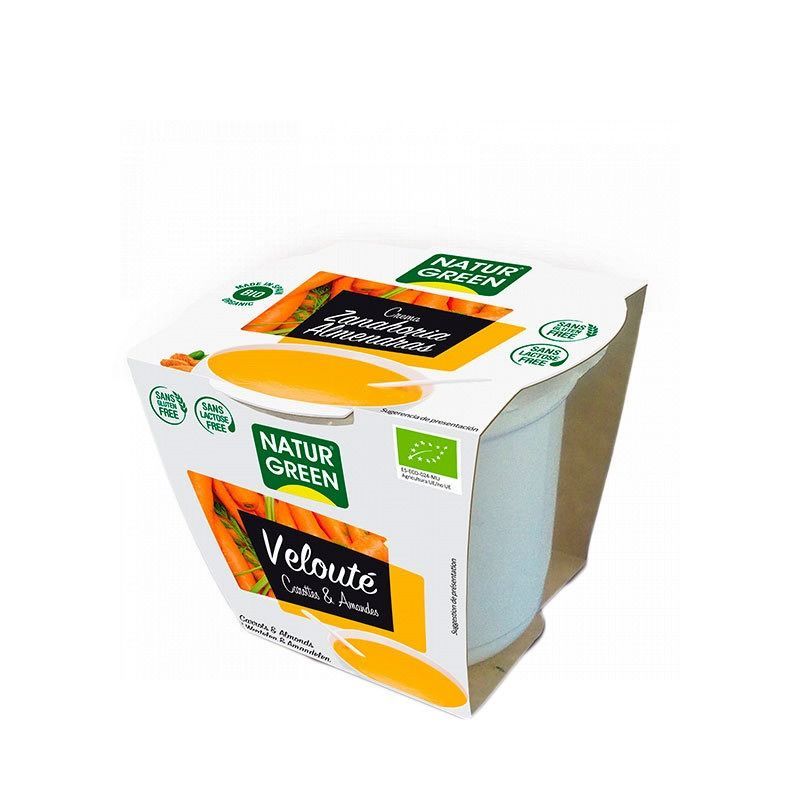 Esta deliciosa crema ecológica de NaturGreen está elaborada con zanahorias y almendras bio, aprovechando todos sus beneficios, que no son pocos. No contiene gluten ni lactosa, por lo que resulta una crema de verduras apta para una dieta vegetariana y vegana. Además, al ser un producto ecológico, su elaboración es respetuosa con el medio ambiente.