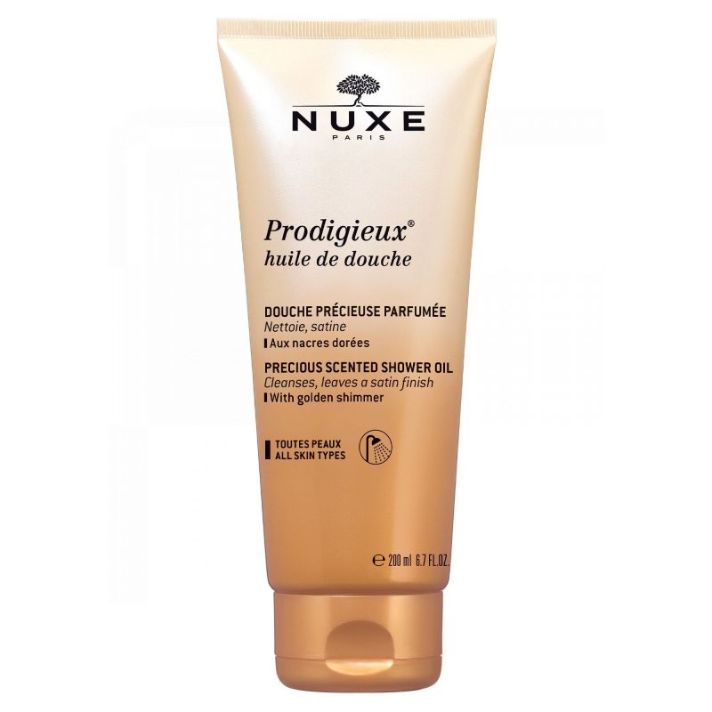 Un aceite de ducha, con nácares dorados, ultrasensorial que limpia con suavidad, satina y perfuma para disfrutar de un verdadero momento de placer. Descubra el aroma mítico del Huile Prodigieuse®.