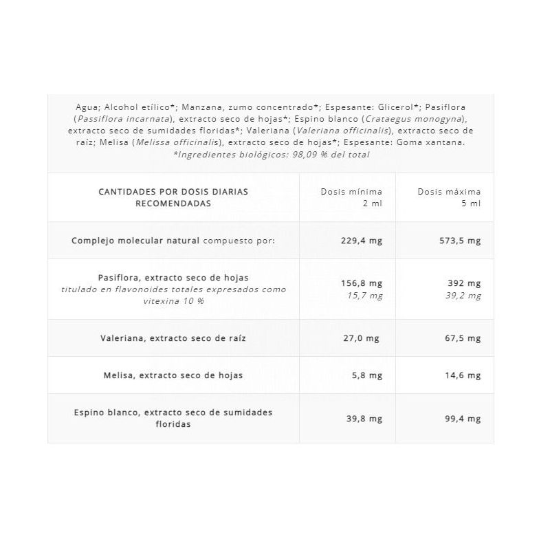 se recomienda tomar de 1,5 a 3 ml por la noche para facilitar el sueño y mejorar su calidad, en caso de necesidad, de 0,5 a 1 ml por la mañana para aliviar las tensiones del día y favorecer la relajación.