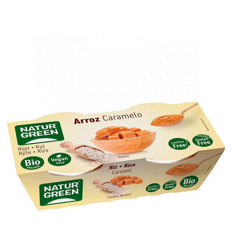 En este postre ecológico se combinan las cuantiosas y conocidas propiedades del arroz con el sabor del caramelo natural. Como resultado se obtiene un postre bajo en grasas con un sabor dulce, perfecto para comer frío. Sin gluten ni lactosa es un postre válido para una alimentación vegetariana y vegana. ¡Desde Green Planet Shop os animamos a endulzaros con estos postres vegetales! Pack de 2 unidades de 125 gramos el conjunto.
