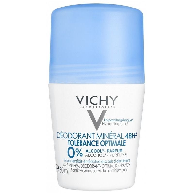 El primer desodorante roll-on 48H e hipoalérgénico de Vichy con 0% de alcohol y perfume en envase reciclable. Una fórmula simple con tecnología RO THER195 para pieles sensibles y reactivas a las sales de aluminio.