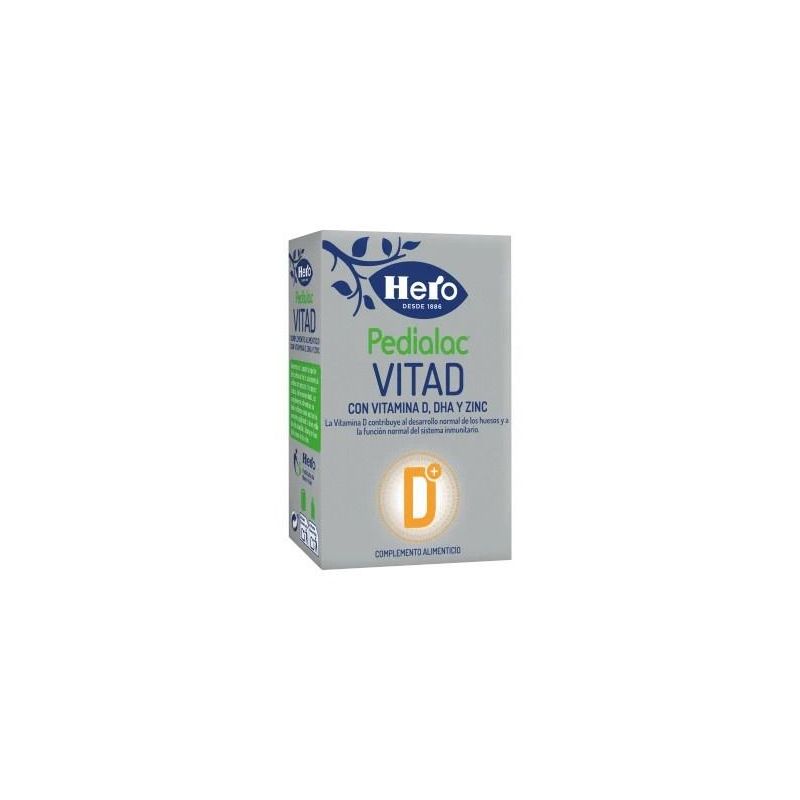 Hero Pedialac VITAD es un complemento alimenticio que ayuda a mantener los niveles recomendados de vitamina D. Contribuye al desarrollo normal de los huesos y a la función normal del sistema inmunitario. Buena tolerancia digestiva, apto para dieta sin gluten y libres de lactosa. De fácil administración, con un sabor neutro.