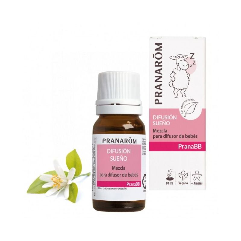 La mezcla para difusor PranaBB ""Sueño"" contiene aceites esenciales 100% puros , con certificación bio*, que calman y tranquilizan. La manzanilla romana, la lavanda, el lavandín, la naranja dulce, el naranjo amargo y la mandarina se alían creando una fragancia muy dulce para un sueño reparador.