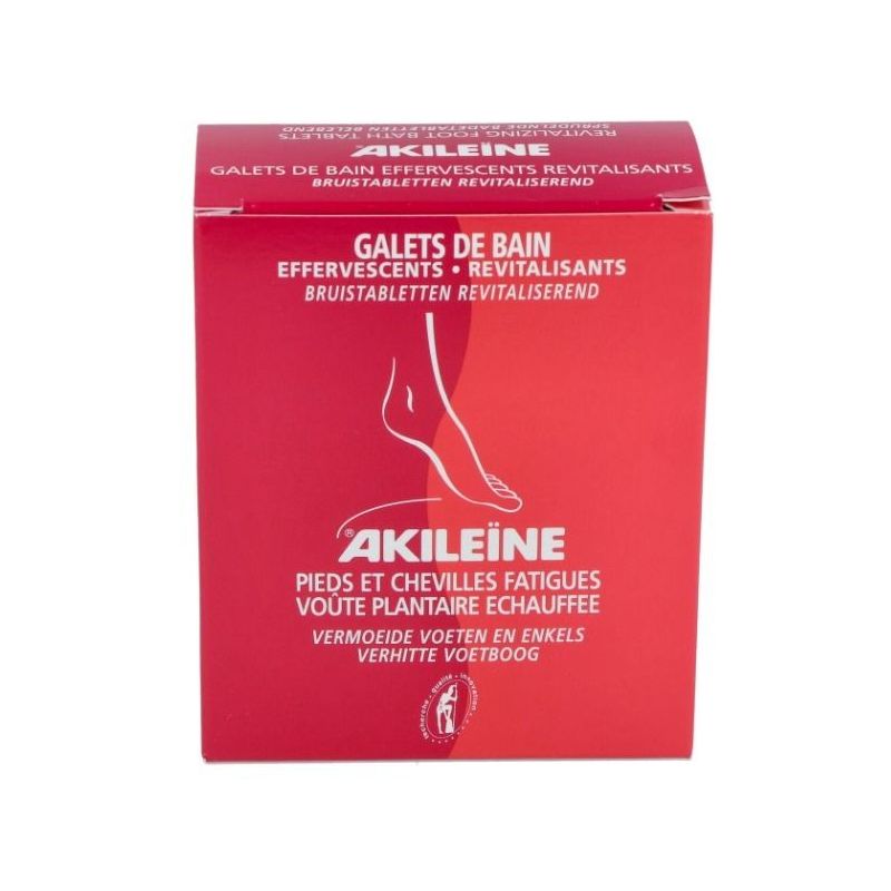 Las pastillas de Baño Efervescentes Revitalizantes Akileïne® refrescan y descansan inmediatamente los pies. Su fórmula y su efervecencia estimulan el arco plantar, refrescan y tonifican el pie para una acción tonificante muy rápida y duradera. Su formato pequeño en monodosis es práctico para viajar.