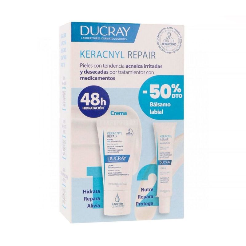 El Pack Keracnyl Repair Crema y Bálsamo Labial de Ducray es una solución completa para reparar y nutrir la piel seca, irritada y con sensación de tirantez, especialmente afectada por tratamientos antiacné. Este dúo de productos actúa en conjunto para contrarrestar los efectos secundarios de los tratamientos específicos y restaurar el confort y la suavidad de la piel y los labios.