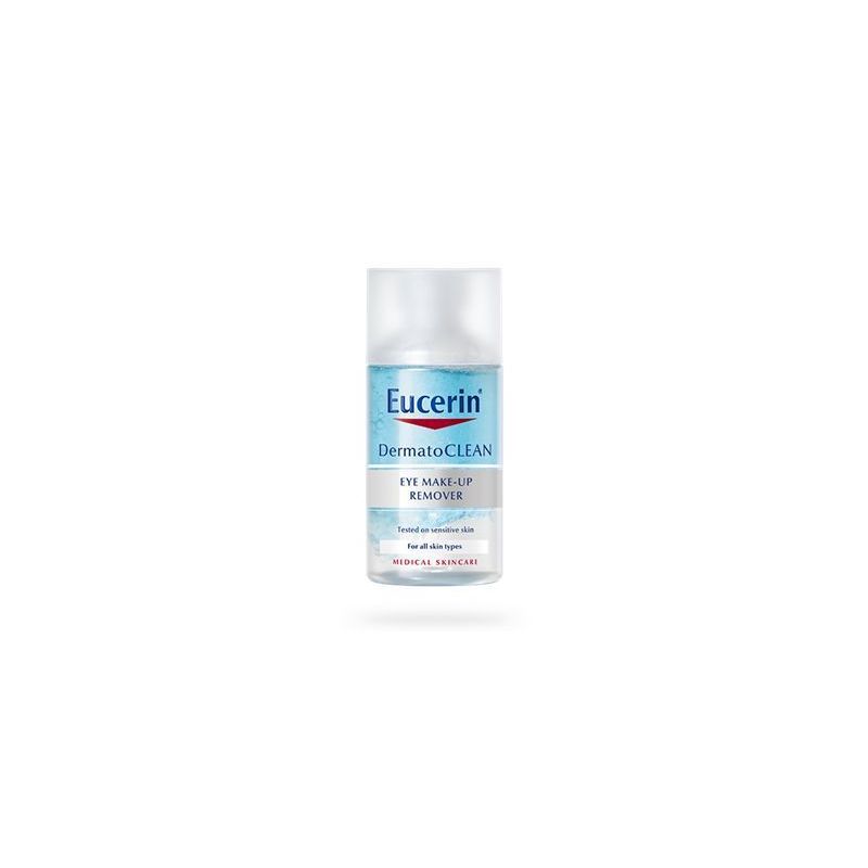 Eucerin Dermatoclean Desmquillante Ojos está indicado para todo tipo de pieles. Es un desmaquillante que funciona en dos fases, permitiendo así que se eliminen incluso los restos del rimel más resistente a la vez que se cuida la delicada zona ocular.