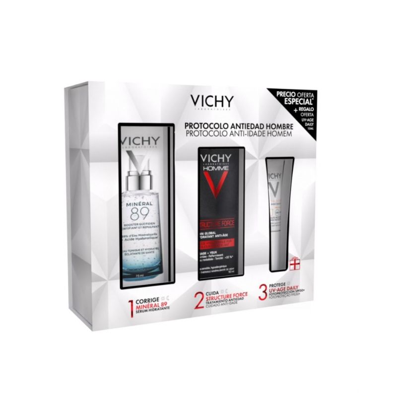 Protocolo Cuidado Hombre Vichy incluye tres productos esenciales para el cuidado masculino: