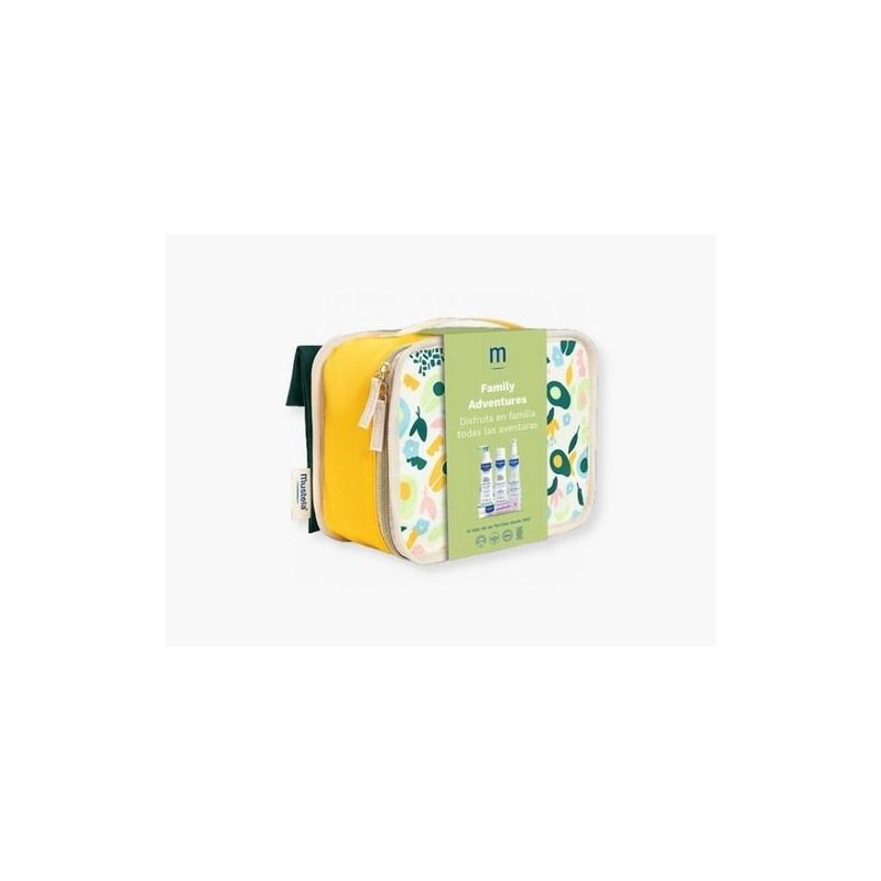 Esta maleta para bebés y niños contiene algunos de los imprescindibles para su cuidado: Crema bálsamo 123 50ml para el cambio de pañal Agua para peinar refrescante 200ml. Gel de baño suave 200ml Leche corporal Hydra Bebé 300ml La maletita cierra gracias a una cremallera dorada de nailon. Además cuenta con un bolsillo lateral extraíble con botones a presión y con un bolsillo interior para una mejor separación. Medidas: 25 cm x 18 cm x 9,5 cm