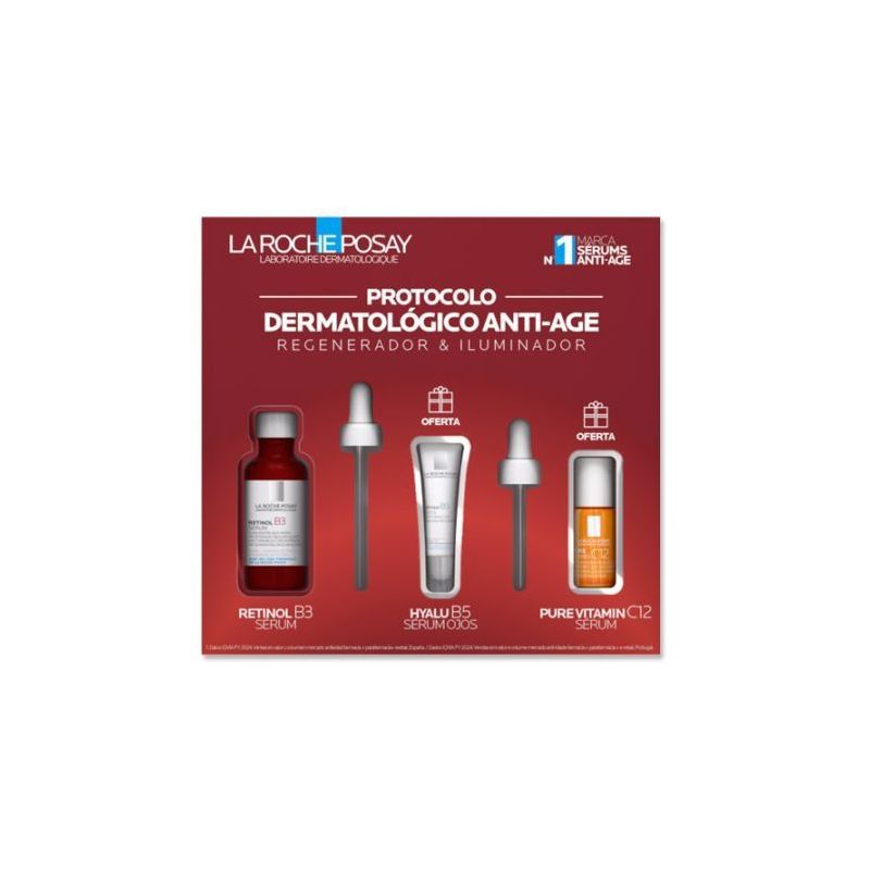 Cofre que incluye serum retinol b3 con regalo de hyalu b5 serum ojos y pure vitamina c serum. Tratamiento regenerador e iluminador.