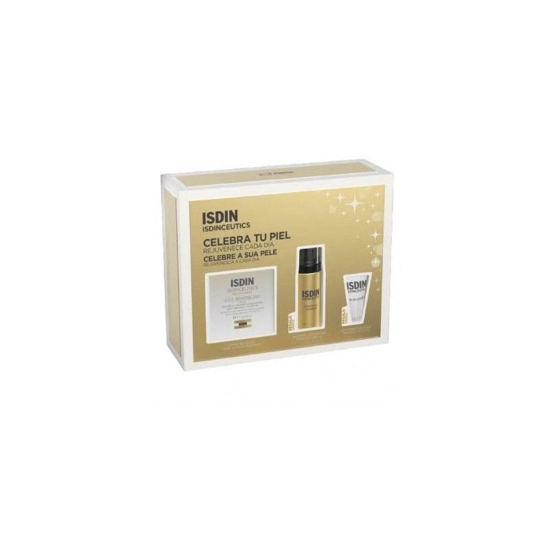 Descubre el isdinceutics cofre age reverse day, un pack exclusivo que reúne todo lo necesario para una rutina antiedad completa. El tratamiento age reverse day ayuda a combatir los signos del envejecimiento, mejora la firmeza y aporta luminosidad durante todo el día. La espuma limpiadora elimina impurezas y exceso de grasa sin resecar, dejando la piel fresca y preparada para recibir el tratamiento. Para completar la experiencia, el contorno de ojos suaviza líneas de expresión, reduce bolsas y atenúa ojeras, devolviendo una mirada descansada y rejuvenecida. Un cofre ideal para regalar (o regalarte) una piel más uniforme, firme y radiante