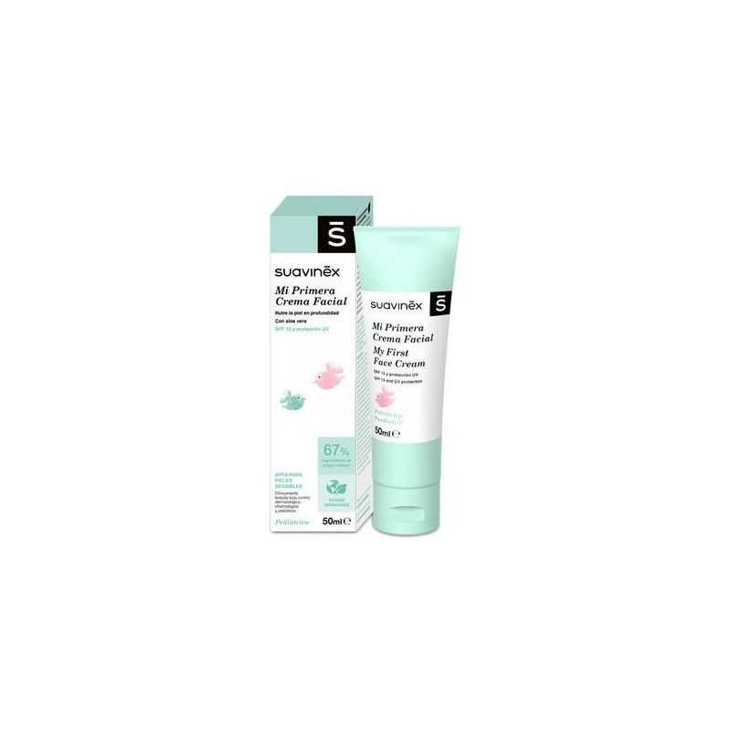 Suavinex Mi Primera Crema Facial 50 ml nutre en profundidad la delicada piel del rostro. Su acción protege frente a agentes externos como el sol, viento o frío. Cuenta con protección solar SPF 15 y protección UV.