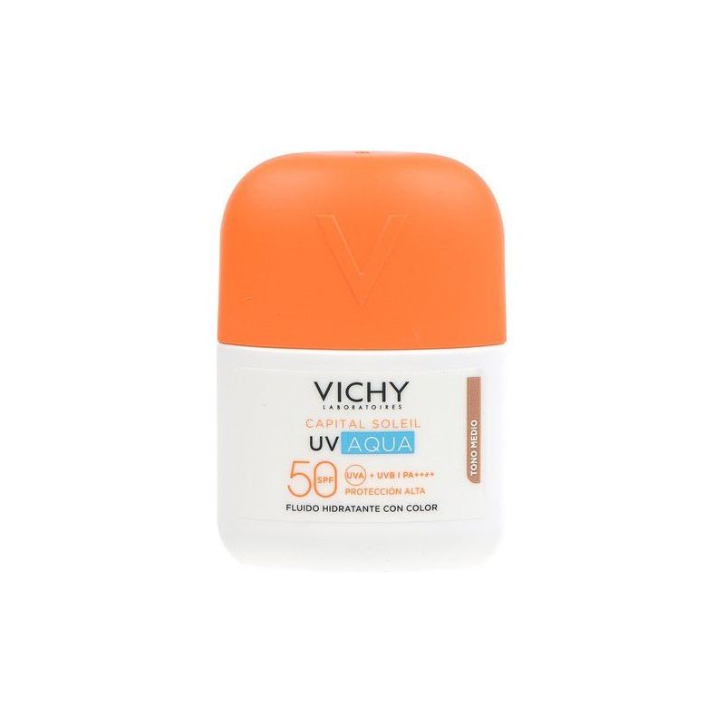Vichy capital soleil uv aqua fluido hidratante spf 50 es un protector solar facial con una textura ligera y fluida que proporciona alta protección contra los rayos uva y uvb. Está formulado con ingredientes hidratantes para mantener la piel suave y protegida durante todo el día. Además, su color tono medio ayuda a igualar el tono de la piel y proporcionar un acabado natural.