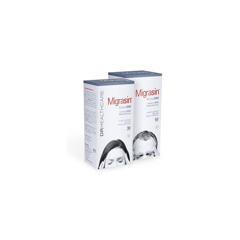 En el mundo, el 12 % de la población padece migraña.Migrasin®es el único tratamiento que previene la aparición del los síntomas causados por Déficit de DAO. Contiene extracto de enzima DiAminoOxidasa (DAO), cafeína y vitaminas del grupo B. Es un alimento dietético para usos médicos especiales, que actúa como complemento enzimático en el tratamiento dietético del déficit de DAO.