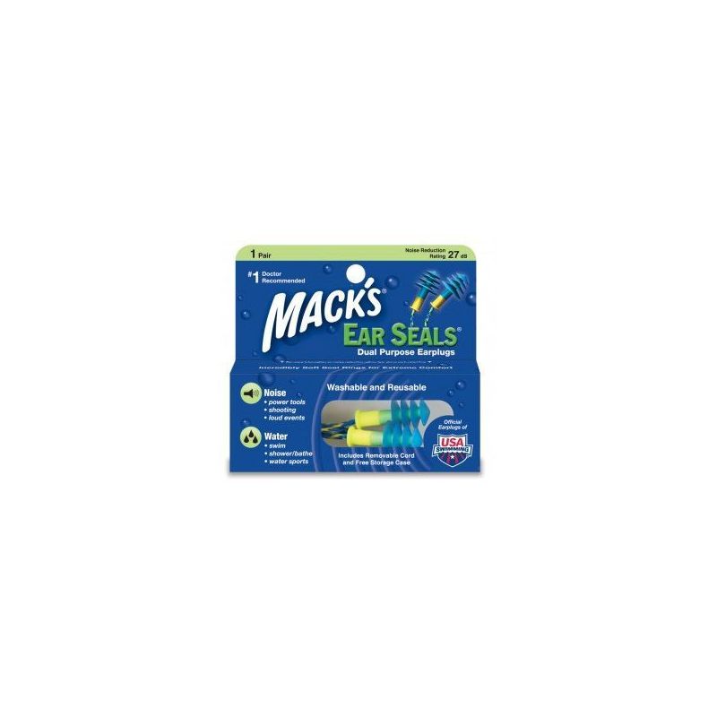 Los Tapones Macks Earl Seals están pre-moldeados por lo que dificultanla entrada de agua y reducen el ruido. Su diseño dual con dos plásticos, facilitan la inserción y su comodidad. También es capaz de reducir ruido hasta 28dB. Su anillo súper blando da una extrema comodidad. Contiene un cordón extraíble, para colgar alrededor de su cuello. Se pueden lavar y reutilizar.