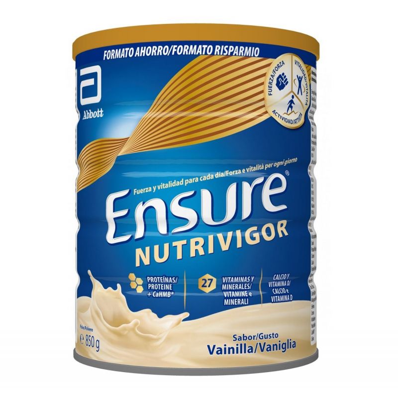 Ensure Nutrivigor Batido Vainilla – Lata 850gr es un complemento alimenticio que contiene una fórmula exclusiva con CaHMB* y, además proteínas y vitamina D que contribuyen a la recuperación de masa muscular.
