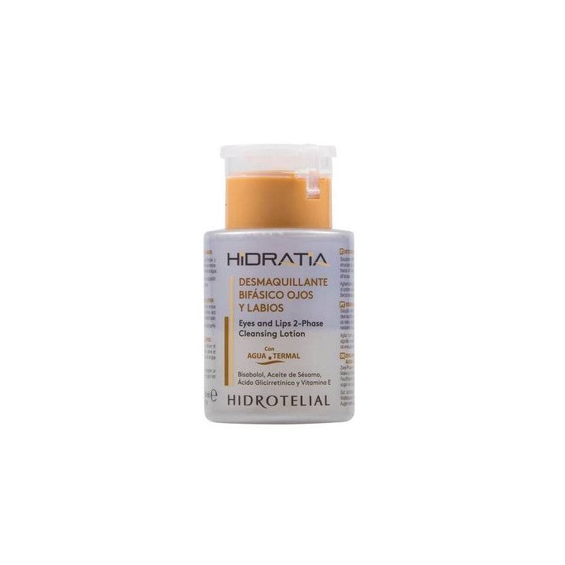 Desmaquillante bifásico (una fase oleosa y una fase acuosa) con alto poder de arrastre que permite eliminar tanto los maquillajes resistentes al agua como los solubles en agua. No requiere aclarado.