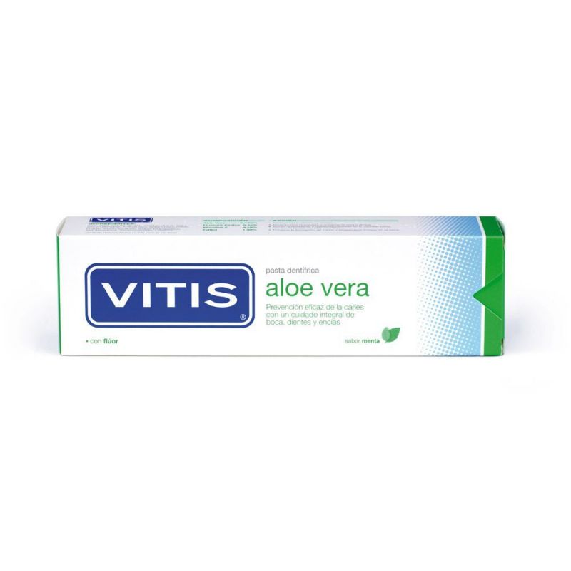 Vitis Aloe Vera Pasta Dentífrica proporciona un cuidado integral de la boca, dientes y encías. Su uso diario ayuda a prevenir la aparición de caries, ya que reduce eficazmente el biofilm oral y favorece la remineralización del esmalte. Su contenido en Vitamina E ofrece además una acción antioxidante y antienvejecimiento de la cavidad bucal.
