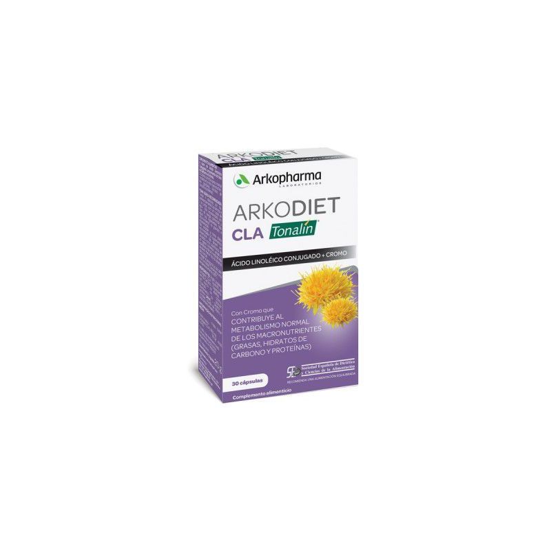 Arkodiet C. L. A. Tonalín + Cromo 30 Cápsulas es un complemento alimenticio a base de Ácido Linoléico Conjugado, procedente del aceite de Cártamo, y Cromo.